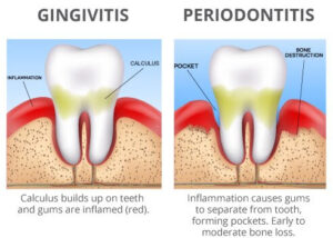 If you ignore the early warning signs of bleeding gums, the reversable issue of gingivitis progresses into periodontitis. Periodontitis is a more severe condition that affects the bone supporting your teeth.